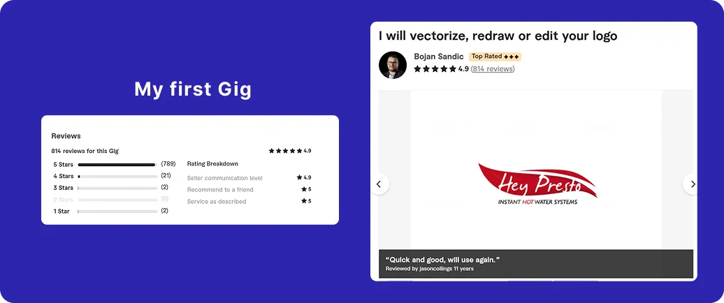 Fun fact: back then, the maximum price for a gig was $5 😅I got my first order super fast. Why? Because I offered a lot for just $5. Sometimes I’d get logos that took me 3 to 4 hours to recreate, and I still delivered everything within 24 hours. Crazy, right?