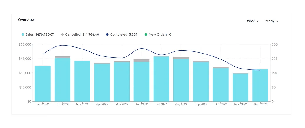 During this time, we moved into a bigger office because our team had grown to 10 people. As you can see in the chart, we reached up to $480K in revenue. What’s really interesting is that compared to 2017, we completed around 2,000 fewer orders, earned $400K more, and had even fewer cancellations. We truly invested a lot into quality and performance. We weren't just working harder, we were working smarter.